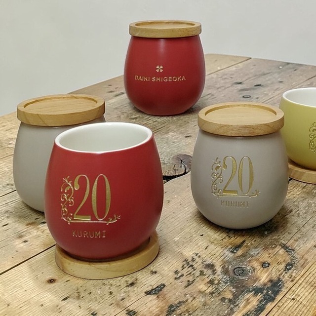 マットな質感のマグカップにお名前を入れたマグカップ。 ぽってりしたカップにナチュラルな木のコースターの組み合わせがおしゃれです。 友人への誕生日プレゼントや、家族への感謝の気持ちを込めたギフトとして、大切な人たちとの絆を深めるアイテムとしてご利用いただけます。自分自身へのご褒美としても、お好きなカラーを選んで個性的に楽しんでみませんか? 特別なプレゼントには オプションでオリジナル木箱にもできます。 サイズ:φ 130mm 高さ 64mm 容量280ml 素材・材質:磁器、天然木 商品のオーダーやオリジナル制作のご相談は、 商品ページ右下の吹き出しマークよりお気軽にご連絡ください。