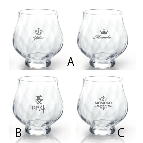 グラスは名入れまたはイラストの彫刻入りです。