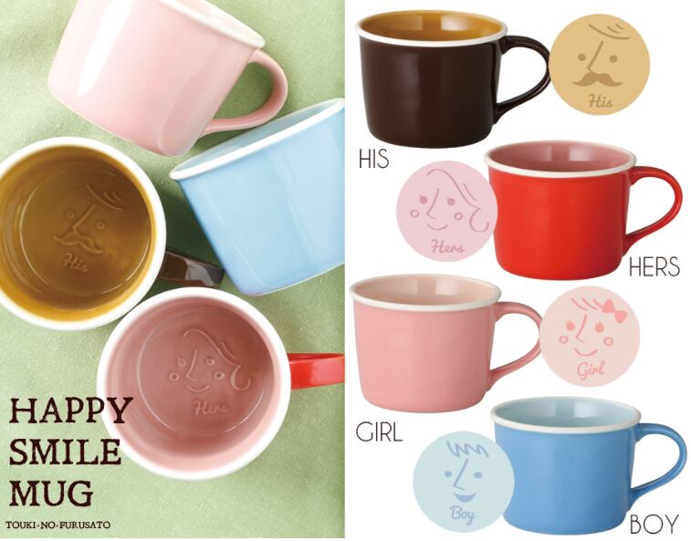 このマグカップは、飲み終わるとカップの底からスマイルが現れる遊び心のあるデザインです。