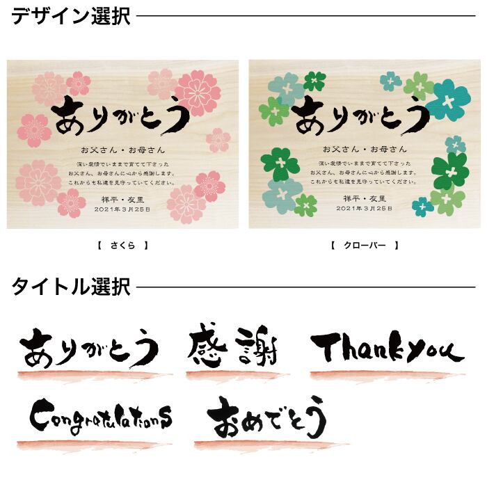 ご両親様などのお名前を彫刻したお洒落な贈呈ギフト♪